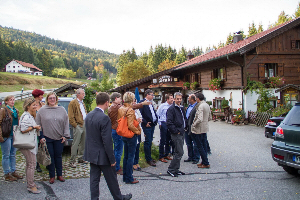 Die Abiturienten 1995 des Gymnasiums Zwiesel haben ihr Klassentreffen - wie schon vor 10 Jahren - auch zum 20jährigem Jubiläum in der Zwiesler Bergkirche mit einem Gottesdienst begonnen. Die musikalische Gestaltung der kirchlichen Feier hat Josef Schmidt mit der Geige zusammen mit Astrid und Markus Ritzinger mit Gitarre und Bass übernommen. Seminarrektor i.K. Peter Gaschler hat zusammen mit Regens Martin Dengler den Gottesdienst inhaltlich gestaltet; dabei hat Peter Gaschler die Begrüßung und Einführung in die Heilige Messe übernommen. Martin Dengler hat bei der Predigt darauf hingewiesen, dass in den vergangenen 20 Jahren viele neue Seiten in der Lebenschronik der ehemaligen Mitschüler geschrieben wurden. So unterschiedlich diese Seiten der Einzelnen auch sein mögen, das "Papier", auf dem sie geschrieben wurde, trägt doch immer das "Wasserzeichen" Gottes, der uns mit seiner Verheißung des Lebens eine große Hoffnung mit ins Leben gegeben hat. Von dieser Hoffnung sollen auch die vielen Gespäche am gemeinsamen Abend des Klassentreffens erfüllt sein; ganz nach dem Wort des Hl. Petrus: "Seid stets bereit, jedem Rede und Atwort zu stehen, die nach der Hoffnung fragen, die euch erfüllt." Beim Fürbittgebet, das Peter Gaschler für alle vorgetragen hat, wurde besonders derer gedacht, die uns während unserer Schulzeit am Gymnasium Zwiesel unterrichtet, begleitet und unterstützt haben und die bereits zu Gott heimgegangen sind. Nach dem Gottesdienst konnten die versammelten Schulkameradinnen und -kameraden zusammen mit den teilnehmenden Lehrerinnen und Lehrern ein Gruppenfoto vor dem Kircheneingang machen.
