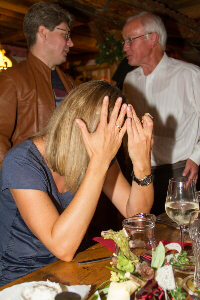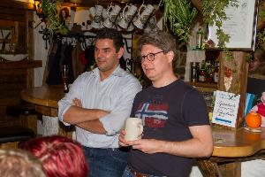 Nachdem sich alle ein bisschen beschnuppert hatten und wir festgestellt hatten, dass wir alle immer noch blendend aussehen, mussten wir uns erst einmal stärken. Zum Glück hatten wir uns alle wieder erkannt, also konnte es nicht so schlimm werden. Die einen bestellten wie früher ein Weißbier nach dem anderen, die Fahrer blieben brav beim Antialkoholischen. Aber Essen und Trinken waren an diesem Abend eigentlich egal, denn wie sich herausstellen sollte, waren es vor allem die ungezwungenen Gespräche und Blödeleien, die diesen Abend unvergesslich machen sollten. Und das Allerbeste war: Obwohl 20 Jahre seit unserem Abitur vergangen sind, sind wir immer noch dieselben geblieben- nur um 20 Jahre Erfahrungen, Erlebnisse und manchmal auch Schicksalsschläge reicher. Glücklich schätzen können wir uns auch, dass wir alle noch niemanden aus unserer Mitte verloren haben.