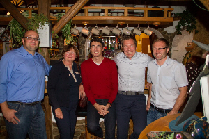 Nachdem sich alle ein bisschen beschnuppert hatten und wir festgestellt hatten, dass wir alle immer noch blendend aussehen, mussten wir uns erst einmal stärken. Zum Glück hatten wir uns alle wieder erkannt, also konnte es nicht so schlimm werden. Die einen bestellten wie früher ein Weißbier nach dem anderen, die Fahrer blieben brav beim Antialkoholischen. Aber Essen und Trinken waren an diesem Abend eigentlich egal, denn wie sich herausstellen sollte, waren es vor allem die ungezwungenen Gespräche und Blödeleien, die diesen Abend unvergesslich machen sollten. Und das Allerbeste war: Obwohl 20 Jahre seit unserem Abitur vergangen sind, sind wir immer noch dieselben geblieben- nur um 20 Jahre Erfahrungen, Erlebnisse und manchmal auch Schicksalsschläge reicher. Glücklich schätzen können wir uns auch, dass wir alle noch niemanden aus unserer Mitte verloren haben.